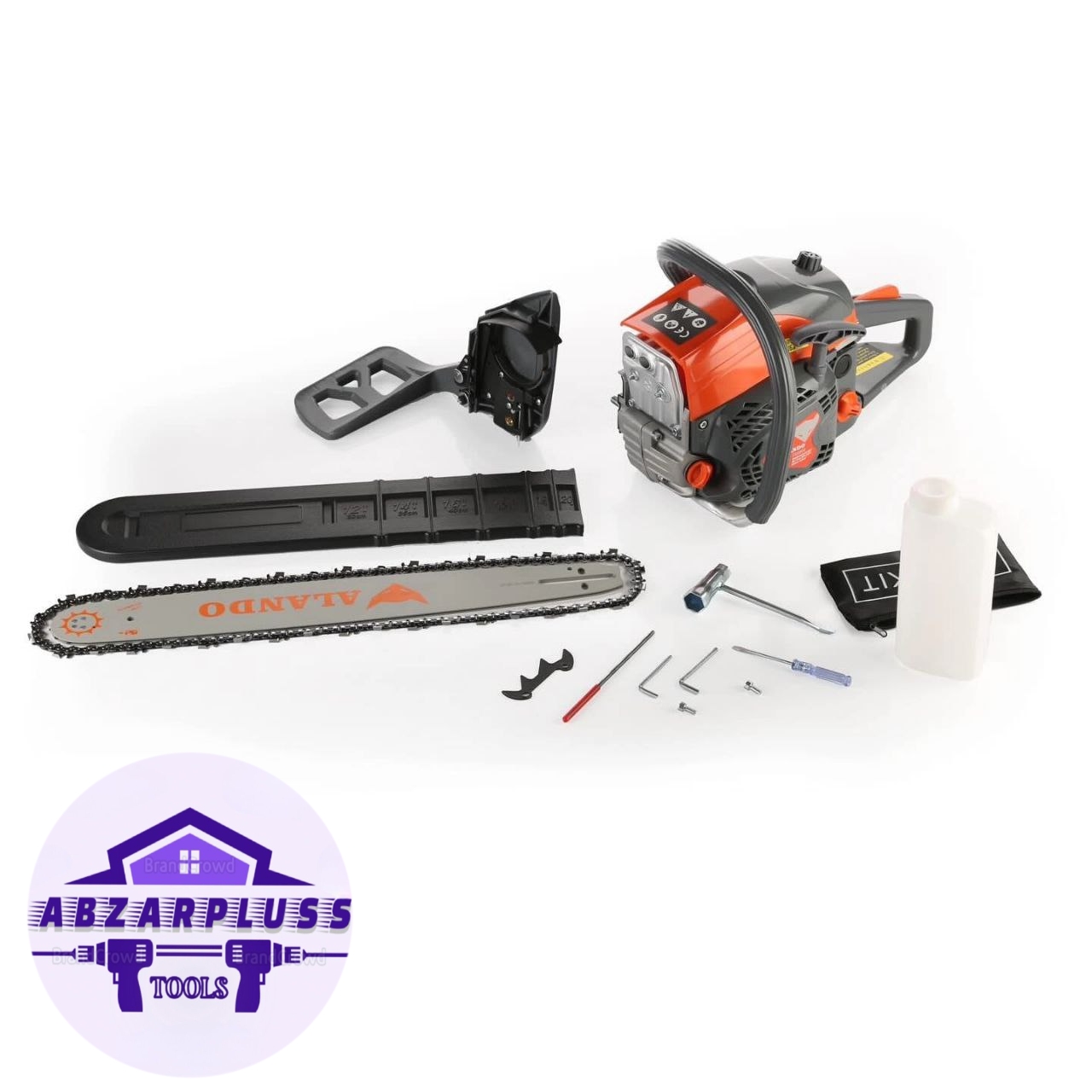 اره زنجیری بنزینی آلاندو با تیغه 50 سانتی برند یک ابزار مناسب جهت برش انواع چوب، درخت و لوار، این دستگاه انرژی خود را از طریق سوزاندن سوخت ترکیبی بنزین و روغن تامین میکند.