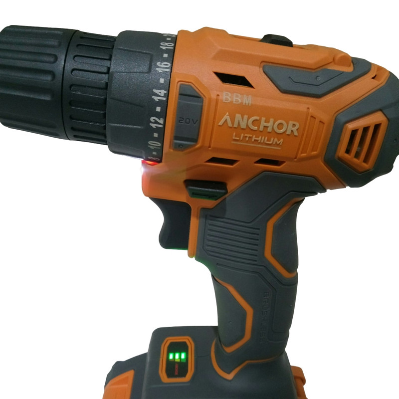 دریل چکشی شارژی براشلس 20 ولت 2 باتری آنکور مدل DCE1 دارای طراحی جمع‌وجور با وزن ۷۸۸ گرم که باعث می‌شود این ابزار برای انجام کار در محیط‌های دشوار کاملا مناسب باشد، مجهز به کلاچ ۲۰ حالته که دقت بالای روند کار را به همراه داشته و از ورود آسیب به سطح کار جلوگیری می‌کند. مجهز به کلید تعویض گریبکس برای تنظیم سرعت دستگاه در دو حالت بیشترین سرعت و بیشترین قدرت، دارای سه‌نظام ۱۰ میلی‌متر اتوماتیک مستحکم جهت سهولت و کارایی بالا در حین کار، سرعت گردش آزاد: از ۰ تا ۳۵۰ و از ۰ تا ۱۴۰۰ دور در دقیقه، طراحی منحصربه‌فرد ارگونومیک و ضدتعریق ،دارای سرعت متغیر چپ‌گرد و راست‌گرد ،دارای باتری لیتیومی با عمر طولانی ، مجهز به سیستم ترمز الکترونیکی ،دارای گیربکس چکشی دوسرعته، مجهز به باتری باکیفیت و مرغوب ، دارای پایه شارژر برای شارژ سریع، دارای کلید چپ‌گرد و راست‌گرد ،دارای نشانگر میزان شارژ باتری ، دارای بدنه ضدآب و ضدضربه ، دارای دو حالت دریل و پیچ‌بند ، مجهز به تکنولوژی کلید گازی ومجهز به کلیدهای ضدغبار میباشد.
