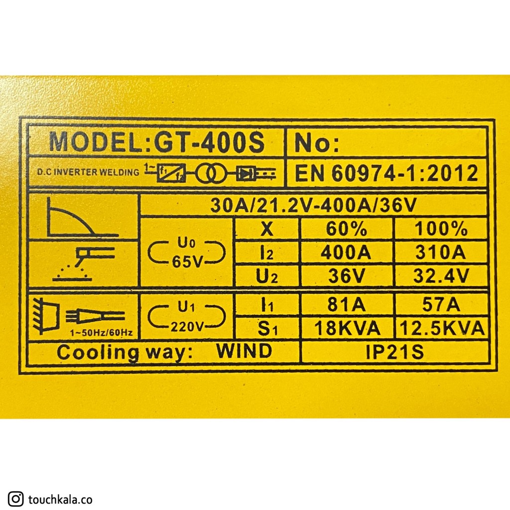 دستگاه جوش اینورتر اینتیمکس دو ولوم GT_400S اینورتری با فن آوری جدید که قابل استفاده با الکترود سایز 1.6 الی 4 میلیمتر و محدوده آمپراژ 30 الی 400 آمپر، این محصول تک فاز و با برق خانگی کار میکند. این دستگاه تنها 1.9 کیلوگرم وزن دارد و در ابعاد 36×29×15 سانتی متر ساخته شده است.