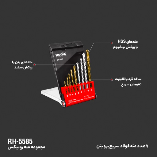 ست مته ترکیبی آهن و بتن رونیکس مدل RH-5585