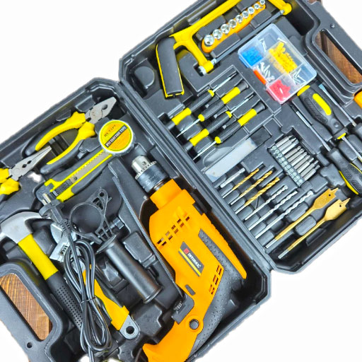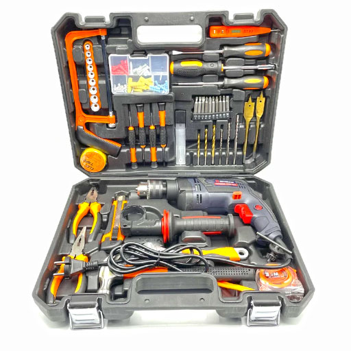 این مجموعه شامل کلیه ابزارهای مصرفی شامل؛ آچار فرانسه ، انبردست، دمباریک، چکش، بکس تک سایز 4 تا 13، متر 3 متری، پیچ گوشتی دوسو و چهارسو سایز بزرگ، پیچ گوشتی نوک خور،، مته آهن سایز 4 و 5 و 6، مته دیوار سایز 5 ،6 و 4، مته برگی سایز 12 و 20، 9 عدد نوک پیچ گوشتی،تبدیل نوک پیچ گوشتی به بکس چسب برق، کاتر، فازمتر دیجیتال، آچار سه نظام،5 عدد تیغ کاتر، دو سایز پیچ گوشتی موبایلی دو سو و دو سایز پیچ گوشتی موبایلی چهارسو،کمان اره چوب و فلز، مجموعه سایزبندی پیچ و رولپلاک می باشد.