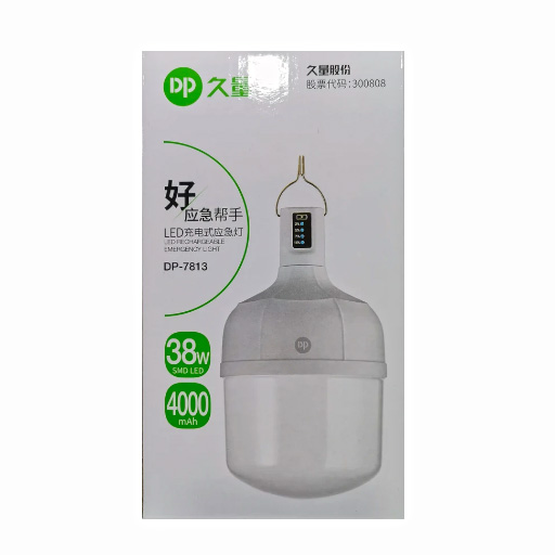 لامپ شارژی آویزی مدل DP-7813 دارای حالات نوردهی کم، متوسط، زیاد و چشمک زن با رنگ نوردهی مهتابی، میزان ولتاژ و جریان ورودی 5 ولت در 1 آمپر و توان خروجی 38 وات میباشد.